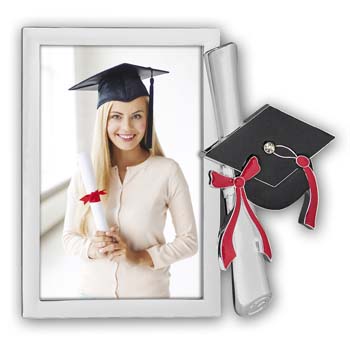 Tocco metalni okvir, srebrne boje, sjajna završna obrada, šarena 3D dekoracija u obliku kape i pergamenta, sa šljokicama, za sto, baršunasta poleđina, pogodno za temu mature.